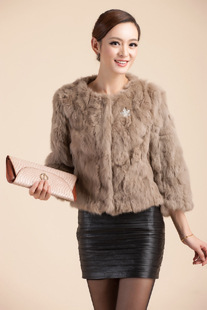 批發(fā)2012新款兔毛皮草外套 圓領(lǐng)七分袖短款修身韓版女裝