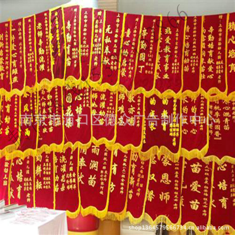 南京德眾廣告位于中國六朝古都--南京,是一家綜合性的廣告條幅、旗幟制作廠家,公司擁有專業(yè)的制作生產(chǎn)車間,一流的制作團(tuán)隊,先進(jìn)的廣告生產(chǎn)設(shè)備,充分利用絲印、熱轉(zhuǎn)印、激光印、數(shù)碼印等現(xiàn)代條幅制作技術(shù),大大提高了產(chǎn)品質(zhì)量,很大程度上降低制作成本,為廣大客戶提供了質(zhì)優(yōu)價廉的產(chǎn)品。 本公司結(jié)合多年制作經(jīng)驗竭誠為您提供以下優(yōu)質(zhì)產(chǎn)品:1.制作各類廣告橫幅(條幅)——飼料橫幅條幅、化肥橫幅條幅、種子橫幅條幅、農(nóng)藥橫幅條幅、食品橫幅條幅、飲料橫幅條幅、電器橫幅條幅、電信行業(yè)橫幅條幅、銀行系統(tǒng)橫幅條幅、郵政系統(tǒng)橫幅條幅;各類布標(biāo)布幅;2.各類彩色條幅橫幅;巨型布幅;3.各類旗幟(國旗、公司旗、外國旗、刀旗、飄旗、彩旗、錦旗);4.各類綬帶;各類物品絲印;各類廣告制作。5.各種規(guī)格X展架、易拉寶、展板等。我們遵循質(zhì)量好,速度快,價格低的原則,利用當(dāng)今互聯(lián)網(wǎng),通過南京這個長三角商貿(mào)中心四通八達(dá)的交通網(wǎng)絡(luò),為客戶制作的產(chǎn)品發(fā)往全國各地,深得客戶的好評。南京市內(nèi)提供上-門-服務(wù),外地代辦貨運(yùn)。熱忱歡迎廣告公司、飼料公司、肥料公司、食品廠、飲料廠、酒廠等各類關(guān)連公司及企事業(yè)單位的咨詢及合作! 歡迎來電垂詢: