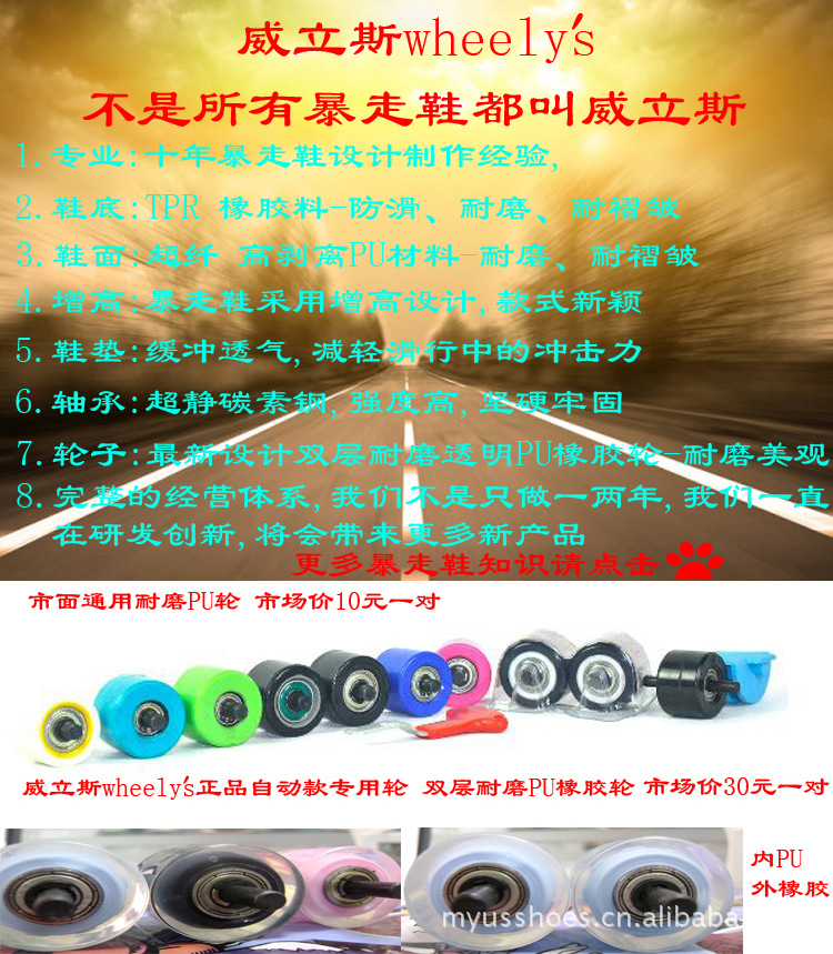 3.設計專業--零四年開始研發暴走鞋至今,設計款式多樣,潮流、前衛、時尚
