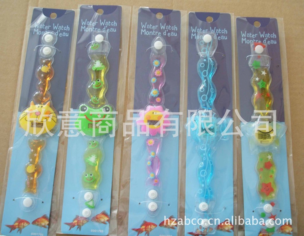 功能:表帶,表面,可按要求定制款式與印刷;帶時間功能,內(nèi)入液體,油色鮮艷,并帶漂浮物有趣。